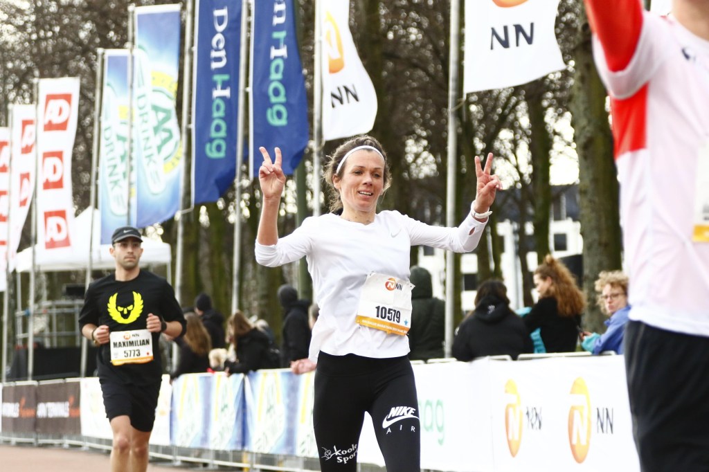 PR!!!!!:Na 21 kilometer draai ik de Koniningskade op trek nog een laatste sprint richting de finishlijn. Meer dan tevreden druk ik m’n horloge uit en zie dat ik vandaag mijn PR met anderhalve minuut heb verbeterd. 1.26.16!! Ik kan het zelf nog niet bevatten hoe mooi de race is verlopen! Een paar meter verder krijg ik een prachtige medaille en pak ik een flesje AA. Wat is dit een heerlijk gevoel. Euforisch loop ik het Malieveld op en bel het thuisfront. Zij hebben met de livetracker m’n race kunnen volgen en zijn ook apetrots!