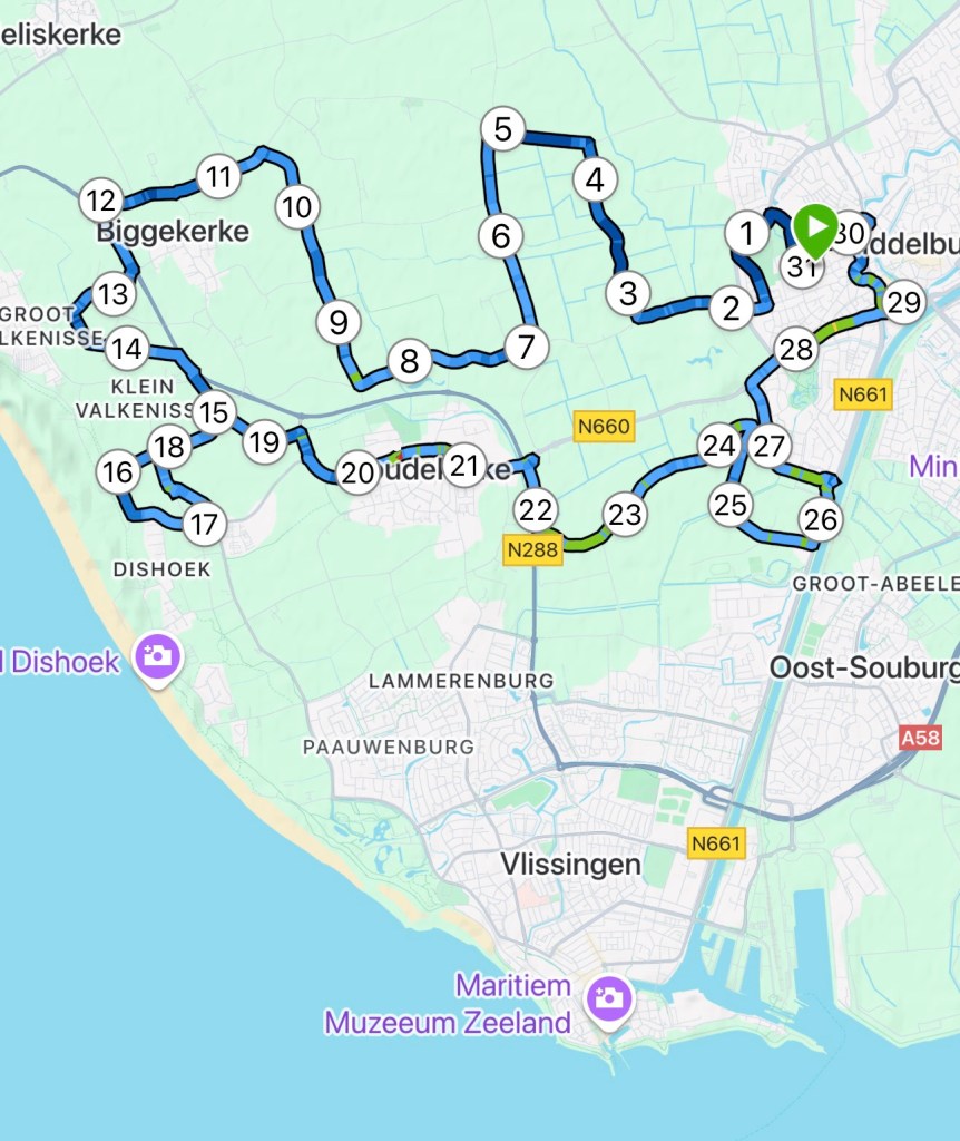 LSD: Oke, om kwart voor negen draaide ik de voordeur op slot en was het tijd om met de duurloop te beginnen. In m’n oren een lekker muziekje en met een flesje Maurten in de hand had ik alles wat ik nodig had voor een ontspannen rondje richting de kust. De eerste kilometers voel ik even hoe m’n lichaam voelt en probeer ik een lekker ritme te vinden. Mijn grootste uitdaging tijdens de duurloop is het trainen van geduld. Je wil je hartslag zo laag mogelijk houden en met een ontspannen tred de kilometers maken. Het feit dat je meer dan twee uur gaat rennen is mentaal ook wel een uitdaging. De kilometers tikken een voor een weg en doordat je hartslag in een lage zone is voelt het tempo comfortabel en train je goed je duurvermogen. Die inhoud is natuurlijk essentieel als je traint voor een marathon. Wanneer je van plan bent om een langere afstand te lopen is het van belang om het eten en drinken tijdens het lopen te oefenen. Sinds een aantal jaar kies ik voor de producten van Maurten. In m’n flesje mix ik een drinkmix 320. Deze drink ik tijdens de eerste twintig kilometer met tussenpauzes op. Dat doe ik vooral op gevoel. Als ik merk dat ik energie nodig heb dan neem ik een aantal slokken. Als het wat warmer is, drink ik aanzienlijk meer dan op een dag als vandaag. Vooraf weet ik wel dat ik onderweg een tappunt nodig heb om m’n flesje bij te vullen. Dat is dus iets waar ik m’n route wel op afstem. Vandaag deed ik dat in Koudekerke bij Beweegcentrum DOEN. Ik vul even m’n flesje en maak een sanitaire stop. Op die manier kan ik weer goed aangevuld verder voor het laatste deel van m’n duurloop. In de laatste tien kilometer at ik nog een Maurten Solid (energiereep) en die gel had ik vandaag niet nodig. Vanwege de marathon van volgende week wilde ik vanmorgen even testen wat m’n hartslag deed bij een iets vlotter tempo en zodoende liep ik de duurloop progressief. Na ruim 31 kilometer loop ik m’n straat weer en word ik na het openen van de voordeur begroet door m’n trouwe viervoeter.